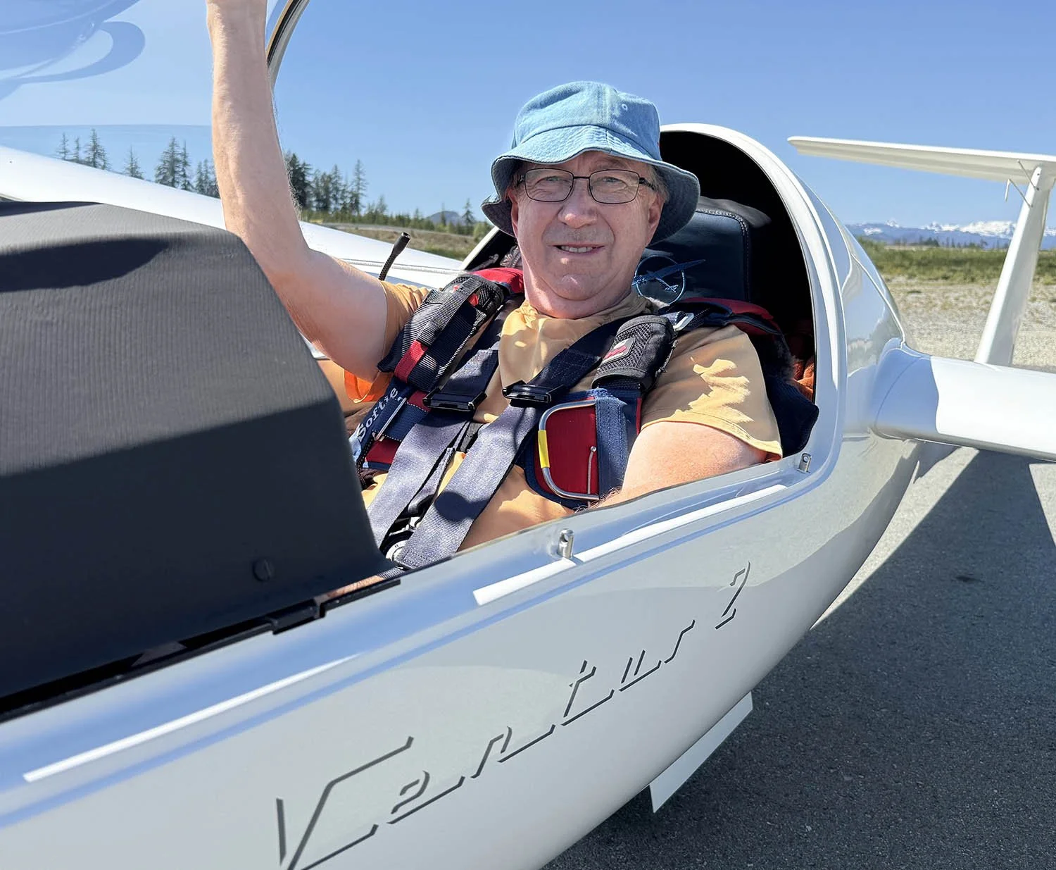 AVSA Club Member, Ward, about to embark on another spectacular flight in his Ventus 2 glider.